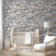Diese rustikale Tapete weist ein weißes Ziegelmuster auf. Der perfekte Akzent für Ihre Wohngestaltung.