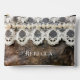 Die schöne, rustikale, große Kosmetik- und Toilettentasche im Western-Stil hat einen dunkelgekalkten Lederhintergrund und eine antike Spitzentafel aus Imitaten mit einer Reihe von Perlen. Personalisieren Sie es mit der einfach zu bedienenden Vorlage. Der Schriftart ist vollständig anpassbar, wenn Sie gewollt haben, ein anderes Stilbild zu verwenden. Erhältlich auch in kleiner Größe.