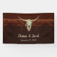 Country Western Cowboy rodeo Bulle Schädel Hochzeitsempfang Banner Zeichen. Brauner rustikaler Bauernstil. Personalisierte alte wilde Westen Vintag antike inspirierte Dekoration. Cooles, modernes Bauerndesign. Passen Sie Skript und Datum an. Bildrecht Marg Seregelyi Fotografie.