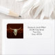 Country Western Cowboy Braun Holz Hochzeit speichern das Datum Rücksendeadressen-Aufkleber. Rustikaler Bullenschädel. Bauernstil-Design. Personalisieren Sie Ihre Typografie. Alte wilde West antique Vintag einzigartig. Cooles, trendiges Bauerntier. Bildrecht Marg Seregelyi Fotografie.
