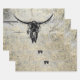 Rustikaler Western Kuh Skull Schwarz Textur Decoup Geschenkpapier Set