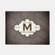 Rustikaler Stil, Vintages Lederlook, mit Monogramm Begrüßungsturm - Antiquitätenantiker, bedrückter brauner Lederhintergrund mit personalisiertem Familiennamen und Jumbo, braunes Monogramm mit Schatteneffekt und familiengeführtes Jahr in einem eleganten, verblassten Look mit Curlicues. Gerne heißen wir Sie vor einer gemütlichen Blockhütte oder einer traditionellen Ranch willkommen. Landschaftliches, mit Monogramm Hauswärmespielgeschenk für die Familie oder ein einmaliges Polterabend für die Neuvermählten.