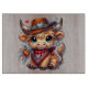 Eine wunderschöne Glasschneide mit einem Niedlichen Western-Hochlandkalf auf einem simulierten Holzbeige-Hintergrund.