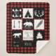 Rustikale sherpa Fleecedecke mit Tieren einer Wildnis wagen Thema plus die rote und schwarze karierte Holzfällerart. Fertigen Sie besonders an, indem Sie Ihren eigenen Namens- und Anfangsbrief addieren. Diese Decke macht ein fantastisches Geschenk!
