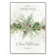 Diese elegante Platzkarte besticht durch ein festliches Wintergrün-Design und eignet sich hervorragend, um Ihren Urlaub oder Ihre Saisonveranstaltung mit einer Touch von Naturschönheiten zu bereichern. Die Aquarellbilder mit üppigen Tannenzweigen, zarten Kiefernnadeln, rustikalen Nadelkronen und lebendigen roten Heiligbeeren schaffen eine warme und einladende Atmosphäre. Ergänzt wird das Design durch eine ausgeklügelte Skripttypografie für Gastnamen und Veranstaltungsdetails, das ganze Set vor einem weichen, subtil strukturierten Hintergrund mit Hauch von goldenem Glitzer.
