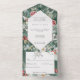 MIT ODER OHNE QR CODE ZUM SCAN ODER MIT ODER OHNE ABENDESOPTIONEN. Das gesamte Hochzeitsdesign besticht durch einen wunderschönen Winterrahmen aus Kiefern, roten Beeren und weißen Blume auf smaragdgrünem, weißem Hintergrund. Ideal für den Winter oder Weihnachten Hochzeit. Erstellt von der einfachen Farmhouse Press.