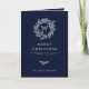 Rustikale weiße Winterkranz Monogramm, Urlaub Grußkarte in festlich blau. Die Karte bietet die Zuordnung von Mustern innerhalb und mehreren Vorlagenlinien für Ihren benutzerdefinierten Gruß.