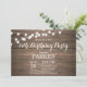 Rustikale Einladung zum 13. Geburtstag mit Streichellichtbeleuchtung Holzhintergrund. 13. 15. 16. 18. 21. 30. 40. 50. 60. 70. 80. 90. 100. Jedes Alter. Für weitere Anpassungen klicken Sie bitte auf die Schaltfläche "Anpassen" und verwenden Sie unser Designwerkzeug, um diese Vorlage zu ändern.