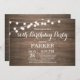 Rustikale 50. Geburtstagseinladung mit Streichellichtbeleuchtung Holzhintergrund. 13. 15. 16. 18. 21. 30. 40. 50. 60. 70. 80. 90. 100. Jedes Alter. Für weitere Anpassungen klicken Sie bitte auf die Schaltfläche "Anpassen" und verwenden Sie unser Designwerkzeug, um diese Vorlage zu ändern.
