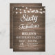 Rustikale 60. Geburtstagsfeier mit Streichellichtbeleuchtung Holzhintergrund. Geburtstagsparty der Frau. Sechzig und fabelhaft. Jedes Alter. Für weitere Anpassungen klicken Sie bitte auf die Schaltfläche "Anpassen" und verwenden Sie unser Designwerkzeug, um diese Vorlage zu ändern.