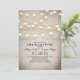 Charmantes rustikales Dinner Probe mit Vintagem Oberteil-Hintergrund-Textur und hängenden Saitenleuchten. Niedlich, elegant und rustikal laden zu einem Probe-Dinner in der Scheune oder auf dem Land ein.
