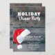 Fun Santa Thema, rustikale Ferien-Dinner Party Einladung - laden Sie Familie, Freunde und Mitarbeiter zu Ihrem Land Winterurlaub Feiern. Reads 'Holiday Dinner Party' in modernem, fett, Buchstaben oben. Rustikaler Stallholzboden mit roten und grünen Konfetti oben in klassischen Weihnachtsfarben. Im unteren  ist eine Weihnachtsmannmütze. Darüber hinaus lautet Einladung mit Schlagschatten "Bitte treten Sie uns bei". Die Erholung der individuellen Feiertagsdetails ist unten in Weiß. Zurück hat koordinierende, rustikale Holz Hintergrund mit roten und grünen Konfetti Rand oben und unten.Nachricht: Alle Bilder werden gedruckt. Nicht echtes Holz oder Konfetti. Es gibt auch verschiedene Einladungspapiere, Formen und Größen. Country chic Feier Einladungen für Ihr rustikales Ferien-Dinner-Party. Geeignet für Ferien-Büro-Party, Party zum Schneiden von Bäumen, Party für Weihnachtsaufenthalte, Landweihnachtsbauernhaus-Thema, etc. Finden Sie mehr Winterurlaub-Party-Einladungen in unserem Zazzle.com/angela65 Shop.