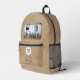 Rustikales Hinzufügen Ihres Logos Custom Text Red Company Foto gedruckten Rucksack. Rustikal-beige Hintergrund. Fügen Sie Ihr Logo, Ihr Foto hinzu und passen Sie den Text, den Firmennamen, die Adresse und die Kontaktinformationen an. Werbeaktion oder Schenkung für Ihre Kunden und Geschäftspartner.