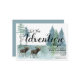 Lass das Abenteuer, rustikale Waldmädchen Elche Camping Geburtstagsfeier Einladung, mit Babybärenfamilie und einem Aquarellwald in Grün und Blau. Rustikaler Holzstil. Blau grün auf der Rückseite der Einladung. Sie können das auch für ein Mädchen anpassen.