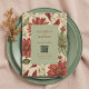 Rustikales Alter Grün & Burgund Rote Flora Herbst Begleitkarte