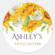 Rustikales Aquarell Sonnenblumen Brautparty Runder Aufkleber