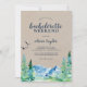 Dieses rustikale Bachelorette Wochenende mit Details-Einladung ist perfekt für ein Outdoor-Event. Das Design besticht durch eine blau-grün gestrichene Wildnislandschaft mit Aquarellkiefern, Vögeln und Bergen auf einem Imitat mit einem hellen Kraftpapier-Hintergrund. Bitte beachten Sie: Dieses Papier ist nicht auf echtes Kraftpapier gedruckt. Es ist eine hochwertige Grafik, die wie Kraftpapier aussieht.