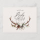Rustikales Bauernhaus botanische Schrift Jungfraudusche einladen. Mit wunderschönem Aquarell, natürlichen eleganten Blumen, Hirschantlern und Schriftzeichen. Dieses moderne Party lädt zum Set des Stils für Ihre bevorstehende Dusche ein.