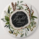 Rustikales Hochzeitsdesign botanisch und Holz Scheibe Brautparty. Mit schönem Aquarell, weißen Blumen, Holzschnitt und Schrifthandeschreiben. Dieses moderne Design ist sicher, den Stil für Ihre bevorstehende Dusche Set.
