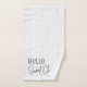Rustikales Bauernhaus Hallo Sweet Cheeks Weiß-Holz Badehandtuch Set mit handgeschriebenem Aussehen Schriftart und einfache minimale Text auf weiß gewaschenen Holz Hintergrund. Ein schicker ländlicher Stil, um die Stimmung in Ihrem Badezimmer zu erhellen! Fantastisch eingerichtetes Bad Bauernhaus Landdekoration.