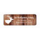 Auf den hiesigen Adressetiketten steht eine weiße Silhouette für Hirsche. Der Hintergrund ist ein dunkler Holzsteg, der gedruckt wird.