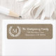 Auf den hellen Adressetiketten des Bauernhauses steht eine Silhouette mit einem weißen Laurels, die den Monogramm-Brief Ihrer Familie in Weiß umschließt. Der Hintergrund ist ein Imitat-Einbruchdruck.