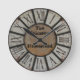 Diese antike Uhr wird in einer rustikalen Dekoration fantastisch aussehen. Mit seinen kühnen römischen Zahlen und seinem erschütterten Aussehen wird er sicherlich ein Hit sein. Das ist keine Metalluhr, die nur gedruckt wird, um so auszusehen. Passen Sie Ihre Wünsche mit Ihrem Familiennamen oder Firmennamen an. Machen Sie es persönlich, machen Sie es etwas Besonderes.
