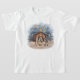 Feiern Sie mit diesem niedlichen Kinderhemd, das meine Krippe in Aquarellfarbe und das Wort "Freude" in goldgeprägter Typografie zeigt, eine traditionelle Geburt Christi im Bauernstil. Kontaktieren Sie Designer für passende Produkte. Copyright Anastasia Surridge für The Christmas Shop, alle Rechte vorbehalten.