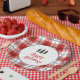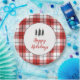 Diese rustikalen Baumhäuser mit ihren Karierten Weihnachtsschnitzeln, die in Rot-Weiß und Schwarz-Flanell gehalten sind, ergänzen die Gestaltung der Feiertage und passen zu den anderen Tellern der Gingham-Tartan-Ferienwohnungen und anderen Accessoires. Das Muster besteht aus rot, schwarz und weiß gestreiften Flanellmustern, drei schwarzen Evergreens und der roten Typografie "Happy Holidays".