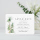 Rustikale Aquarellpalmen, Save the Date Karte. Elegantes und modernes Typografie-Design. Die Hintergrundfarbe, die in Salbei grün angezeigt wird, kann angepasst werden.