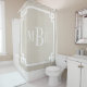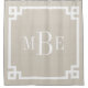 Moderner Duschvorhang aus Bauernhof personalisiert mit einem großen klassischen 3-Buchstaben-Monogramm in einer griechischen Schlüsselgrenze. Bitte beachten Sie, dass die subtile Einbruchstruktur der Imitate Teil des bedruckten Designs ist und das Produkt nicht aus echtem Einlegestoff besteht. Klicken Sie auf die Schaltfläche "Anpassen", um Ihren eigenen Text hinzuzufügen und ein einzigartiges Design zu erstellen. Die perfekte Touch für Ihr modernes Bauernbad!