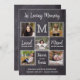 Rustikales Chalkboard Einzigartige Beerdigung Danke Karten. Diese Beileid-Beerdigungskarten verfügen über eine einzigartige Collage aus Foto für 5 Ihrer Lieblings-Fotos, Monogramm Initial und Name, ein herzliches Zitat " In Loving Memory.. Loved beyond words , Missed beyond maß.. Forever in our Hearts" auf Kalkboard in grauem und weißem Design. Diese Gedenkkarten eignen sich hervorragend für die Begräbniskarten, oder für die Feier des Beileids dank der Dankkarten. Personalisieren Sie Ihre Rückmeldung mit Ihrer Danksagung, Name und Daten. ...COPYRIGHT © 2020 Judy Burrows, Black Dog Art - Alle Rechte vorbehalten. Rustikales Beileid zur Beerdigung Foto Collage Danke Karte