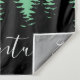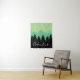 Rustikale Waldbäume Silhouette und Gebirgswand mit dem Wort "Abenteuer" in weißer Schrift.