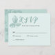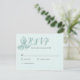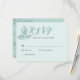 Eine rustikale aquamarine Blütenhochzeit RSVP Karte, die für Ihren besonderen Tag angepasst werden kann. Dieses Design zeichnet sich durch originelles handgezeichnet botanisches Illustrations-Set vor einem wunderschönen weichen blau-grünen Hintergrund aus. Vervollständigen Sie Ihre Hochzeitssuite mit unserer koordinierenden Rustic Whimsical Floral Collection.