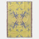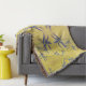 Auf diesem Throw Blanket hat das zarte, originelle Muster dunkelblauer Blätter auf einem rustikal gelben Hintergrund das Aussehen einer alten Welt, französischer Stoff. Das Muster wurde aus einem Originalfoto von Petunia-Blätter gemacht.