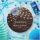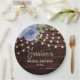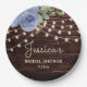 Rustikale, dunkelbraune Brautparty-Papier-Teller mit periwinklig blauen Wasserfarben Blumen und glitzernde Saitenleuchten, die mit den Namen der Braut und dem Duschdatum angepasst sind. Kontaktieren Sie uns für Hilfe bei der Anpassung oder der Anpassung von Produkten.