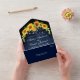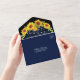 Rustikales blaues Holz Sonnenblumen Lichter Hochze All In One Einladung