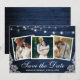 Rustic Blue Wood String Lights und Lace 3 Foto Save the Date Verlobung Announccard