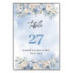 Rustikales, blaues Hydrangea, weiße Rosen Tischnummer