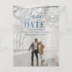 Rustikales Blue Script-Foto Save the Date Ankündigungspostkarte
