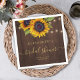 Rustikales Brautparty-Party personalisierte Papierservietten auf braunem Holzboden mit gelbem goldfarbenem Sonnenblumen-Bouquet und trendigen Imitaten Goldkalligraphie-Skript.+++ Mit Ihren Details einfach zu personalisieren! Geeignet für Sommer oder Herbst Garten, Bauernhof, Scheune, Hinterhof rustikale Brautparty, Brunch oder Mittag-Party.
