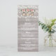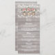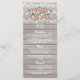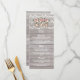 Stilvolle rustikale Speisekarte mit hellgrauem rustikalem Holzfußboden, stinkenden Tinkellichtern, drei rosafarbenen Rosengläsern mit eingewickeltem Einbruch, Initialen, die auf den Marmeladen gedruckt sind, und trendiger weißer Formulierung.