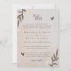 Machen Sie Ihren Hochzeitstag unvergesslich mit dieser rustikalen Blumen-Hochzeitseinladung. Dieses Design mit einer zauberhaften Farbpalette in Beige und Braun bietet delikate Blumendetails und elegante Script-Schriftart. Die Einladung hat einen subtilen, strukturierten Hintergrund, der Wärme und ein natürliches Gefühl, perfekt für eine romantische und intime Hochzeitsfeier. Passen Sie die Details an Ihren besonderen Tag an und verließe Sie Ihren Gästen mit dieser wunderschön gestalteten Einladung einen bleibenden Eindruck.