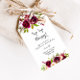 Diese rustikalen, rot-bordeauxroten Sip-Hooray-Brautparty-Geschenkmarken sind perfekt für einen einfachen Polterabend. Die Einrichtung besteht aus rosa, rot, bordeauxrot und bordfarbenen Blume mit grünem Blattwerk.