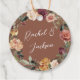 Lassen Sie Ihre Gastgeschenke Hochzeiten mit diesen personalisierten Tags mit den Namen der Paare in der Mitte abschließen, umgeben von einem üppigen Kranz in üppigen Herbsttönen mit Blüten, Bordeaux und Pfirsich mit grünem botanischem Blattwerk. Entworfen, um unsere Rustic Bloom Hochzeitskollektion zu ergänzen.