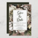 Auf einem staubigen rosafarbenen Hintergrund, der die Gäste zu einem unvergesslichen Hochzeitsfest einlädt, wird ein ätherisches Bouquet mit blühenden Ohrwürfeln in Winterweiß und staubigen Rosatönen mit saisonalem immergrünen immergrünen Grün geschmückt. Die Rückseite weist einen dunkelgrünen Hintergrund auf. Textfarbe ist dunkelgrün. Fügen Sie einfach Ihre Namen und Hochzeitsdetails hinzu. "Save the Date" kann nur von Designern bearbeitet werden, der verbleibende Text kann jedoch bearbeitet werden. Composite Design von Holiday Hearts Designs (Rechte vorbehalten).