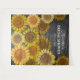 Elegante Aquarellmalerei von Sonnenblumen mit grauer rustikaler Holzstruktur. Name und Datum für die Personalisierung.