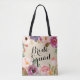 Schöne rustikale Blume in Aquarellfarben dienen als Rahmen für die Worte "Bride Squad" auf dieser Brautparty-Tasche, die ein schönes Geschenk für Ihre Brautmädchen ist. Personalisieren Sie die Angaben mit dem Namen Ihrer Brautjungfrau auf der Rückseite. Moderne Kalligraphie fügt diesem klassischen Design von Kitty Pie Prints eine stilvolle trendige Touch hinzu. Sie können den Stil und die Farben des Schriftartes ändern, um dem Motiv zu entsprechen.
