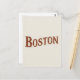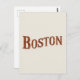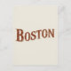 Ein Vintages Design mit dem Begriff "Boston" in einem rustikalen, bedrückten Schriftart mit einem strukturierten Hintergrund. Die Farbpalette ist warm und einladend, mit braunen und cremefarbenen Tönen.