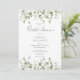 Die rustikale Boho Brautdusche lädt Sie ein. Dieses einfache Design zeichnet sich durch zwei Wasserfarbentropfen aus weichem, grünem Blattwerk aus. Der spielerische Schriftart hat kleine Herzen für die Verzierung. Diese Einladung ist mehr als nur eine Ankündigung; es ist ein Kunstwerk, das die Romantik und den Charme Ihres besonderen Tages widerspiegelt. Erstellt von der einfachen Farmhouse Press.